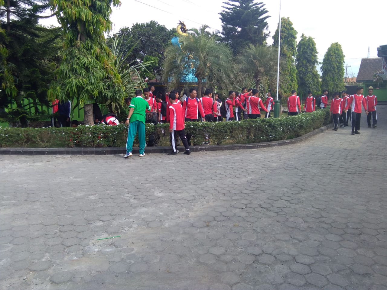 Seluruh warga sekolah melaksanakan kegiatan Senam bersama di lapangan SMP Negeri 1 Kembaran.