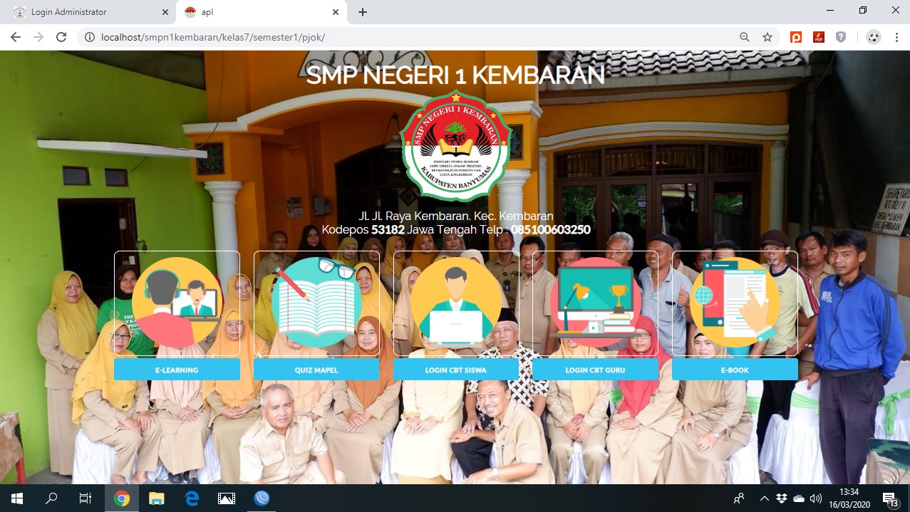 SMP Negeri 1 Kembaran telah meluncurkan Aplikasi Elearning. Peluncuran Aplikasi elearning ini bertujuan membiasakan siswa untuk menggunakan HP secara bijak. Untuk melihat tutorial cara mengerjakan soal CBT di elaerning klik di : SINI Aplikasi Elearning ini berjalan online 24 jam kecuali di sekolah mati lampu / ada pemadaman dari PLN